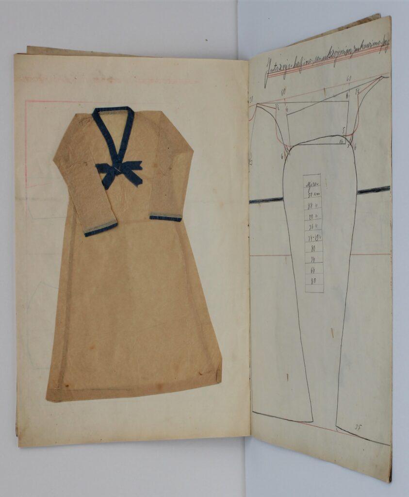 Krojenje i šivanje; Školska mapa s četiri arka krojnih crteža i modela