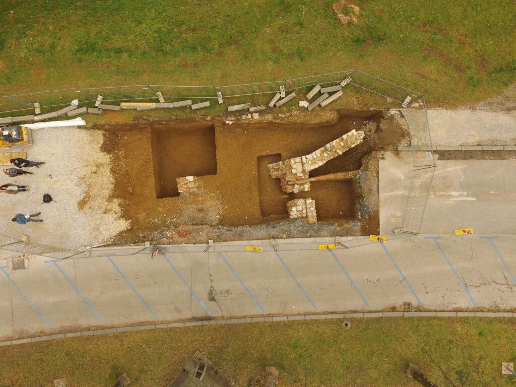 U listopadu nastavljamo istraživanja kako bismo utvrdili opseg kule i njezino pružanje u prostoru. Otvaranjem šeste arheološke sonde utvrdili smo da su prethodni infrastrukturni radovi (telekomunikacije i plin) uništili sve arheološke strukture, uključujući i kulu. Istraživanja smo usmjerili na nogostup i travnatu površinu prema Glorijeti kako bismo utvrdili postojanje eventualnog nastavka kule na suprotnoj strani. Nailazimo na kamenu strukturu koja nalikuje na nastavak zida iz sonde 5 i strukturu od opeke koja se naslanja na zid. Izgledom i fakturom opeke pronađena struktura izgleda kao ispusni kanal pronađen kod Novih vrata.