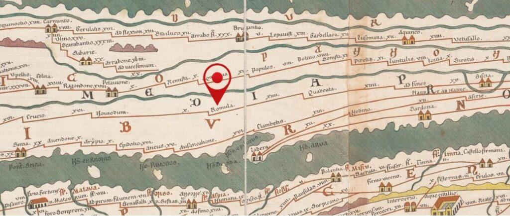 U Itinereru, Romula se spominje na cesti između Senja i Siska, kao treća postaja prije Siska: nakon nje dolaze Kvadrata (Quadrata) i Kod Granice (Ad Fines). Ove dvije potonje postaje javljaju se još i na popisu postaja na cesti između Ljubljane i Siska, što bi značilo da se nakon Romule spomenute ceste spajaju. Za razliku od pravca Senj-Sisak, pravac Ljubljana-Sisak prikazan je i na Tabuli. Očekivano, Kvadrata i Kod Granice nalaze se na tom pravcu, no ovaj put pridružena im je i Romula, kao treća postaja prije Siska. Stoga nije neobično da je Katančić identificirao Romulu kao prometno čvorište cesta koje pristižu od Ljubljane i Senja te vode do Siska. Za njega je upravo prisustva Romule na dvije različite ceste razlog za osporavanje u njegovo vrijeme prevladavajuće pretpostavke da put od Ljubljane do Siska u cijelosti vodi dolinoma Save, a kao začetnika takvog čitanja antičkih izvora navodi Schönlebena (Johann Ludwig, 1618. – 1681., kranjski teolog i povjesničar).
